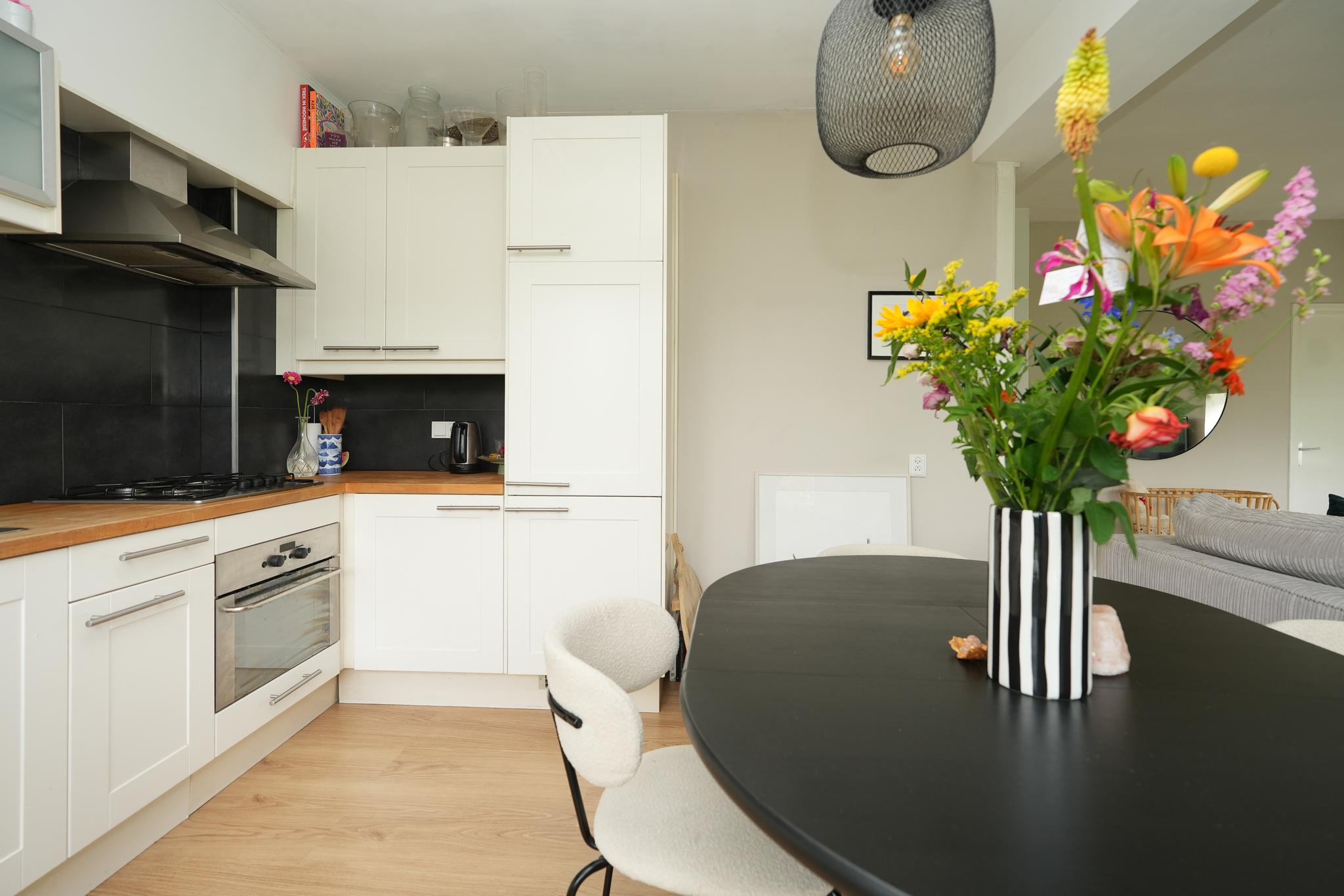 Appartement: Entree, ruime hal, woonkamer met open keuken welke is voorzien van de nodige inbouwapparatuur. Vanuit de keuken heb je directe toegang tot het balkon, welke op het zuidwesten is gelegen, waar je heerlijk kunt genieten van de middag- en avondzon.