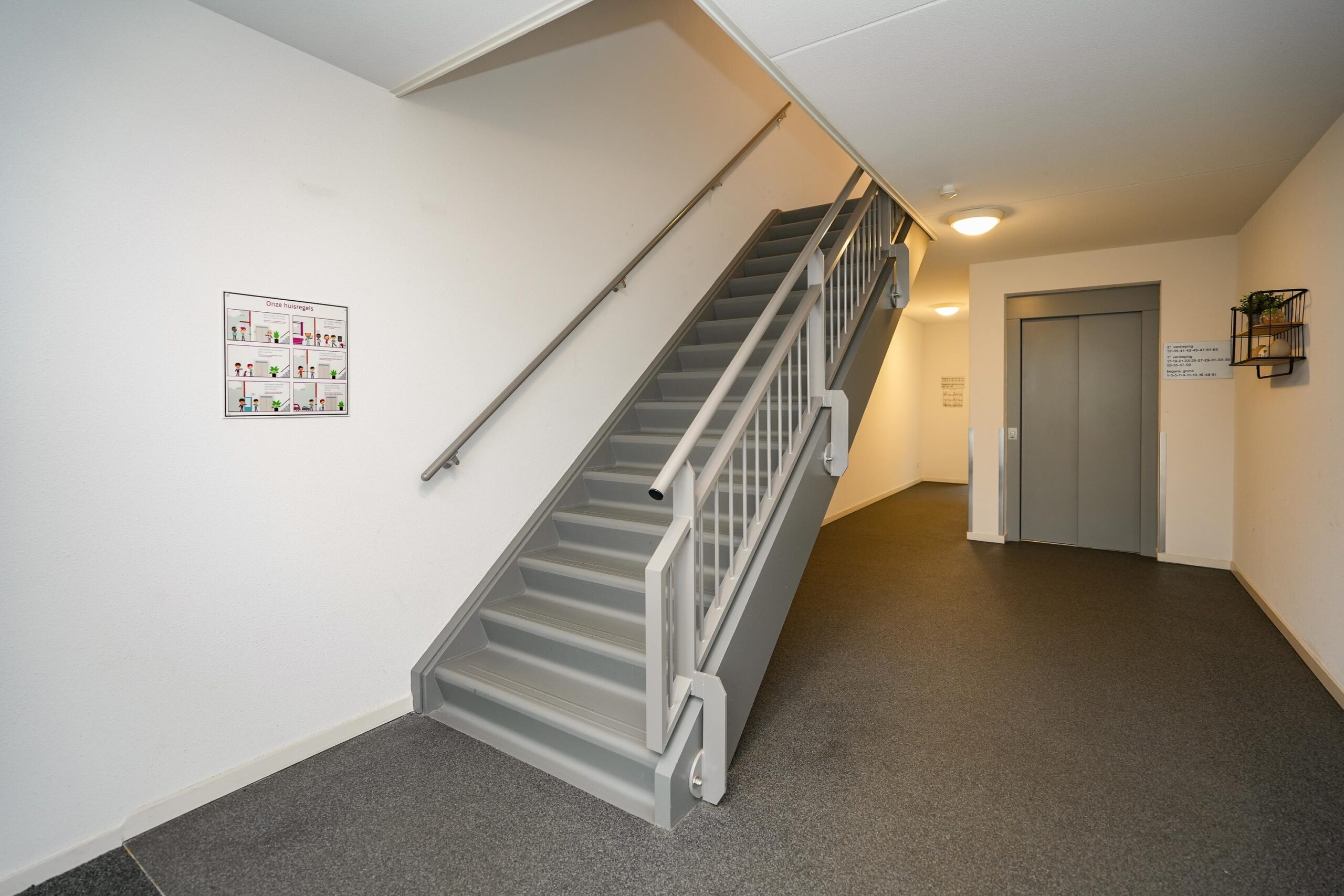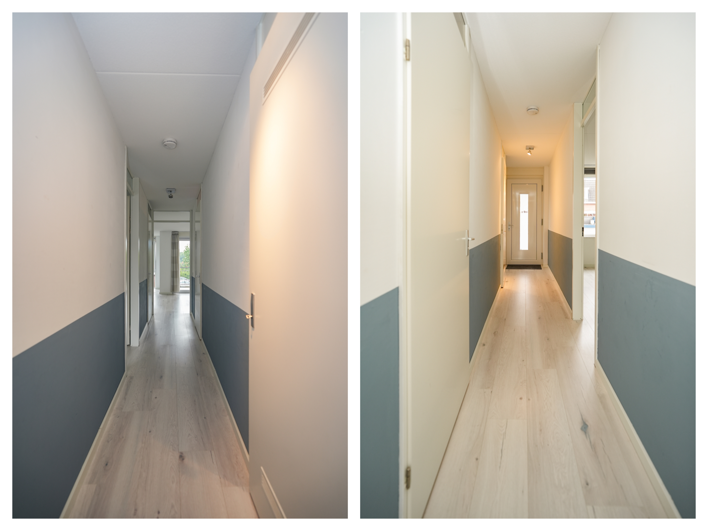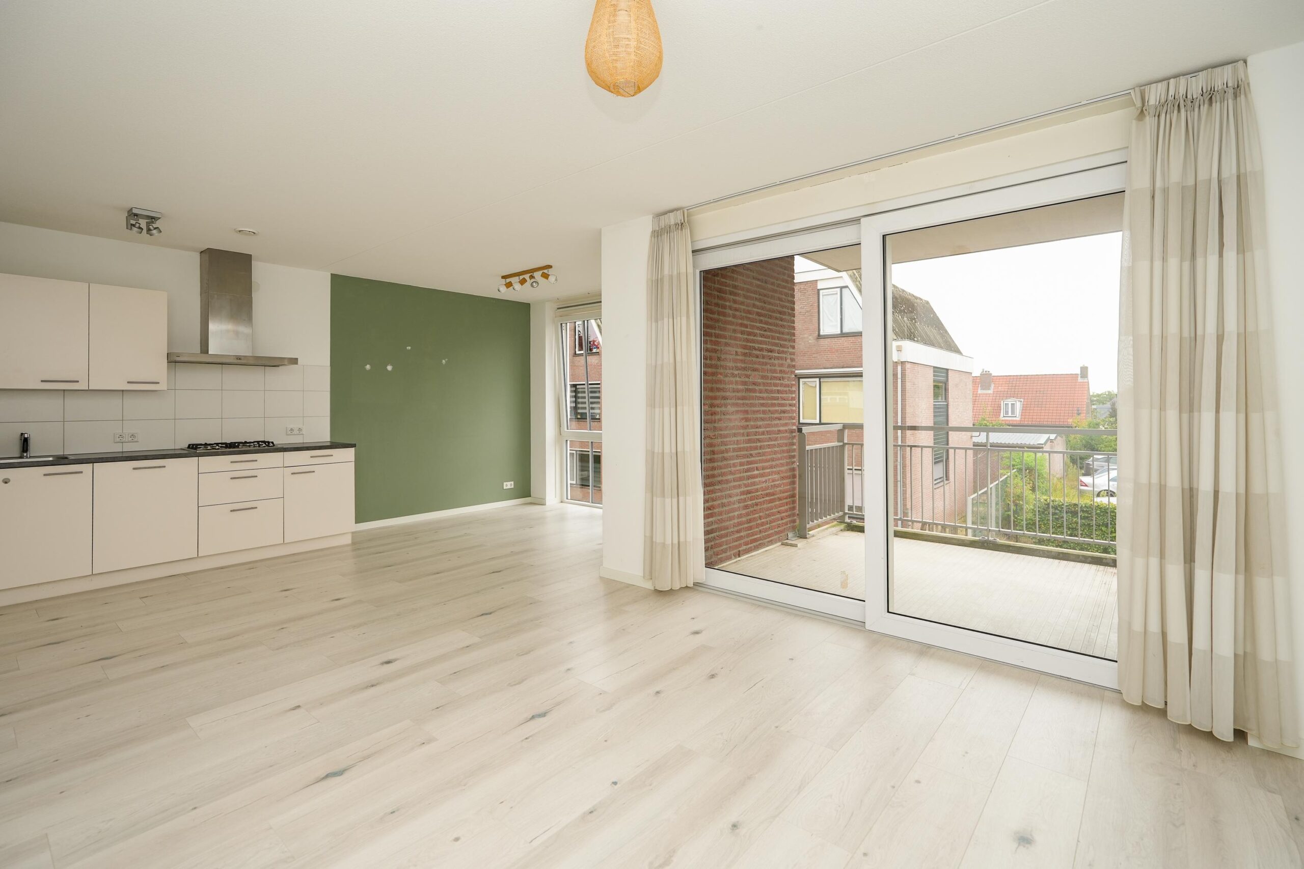 Entree, gang, apart toilet met fontein, 2 slaapkamers, luxe badkamer met douche, toilet en vaste wastafelmeubel, royale L-vormige woonkamer met schuifpui naar een royaal balkon, moderne open keuken met diverse inbouwapparatuur zoals vaatwasser, kookplaat, afzuigkap, oven en koelkast, technische ruimte met o.a. aansluiting wasmachine/droger en cv ketel.