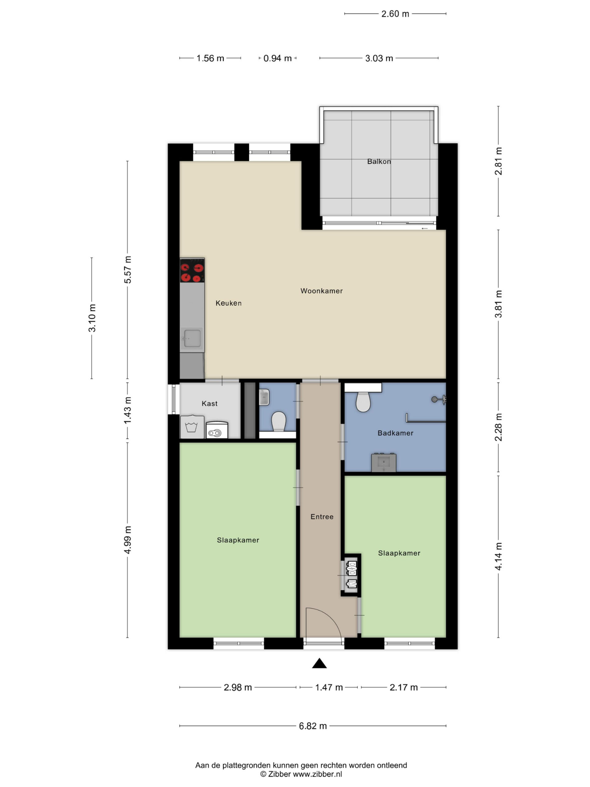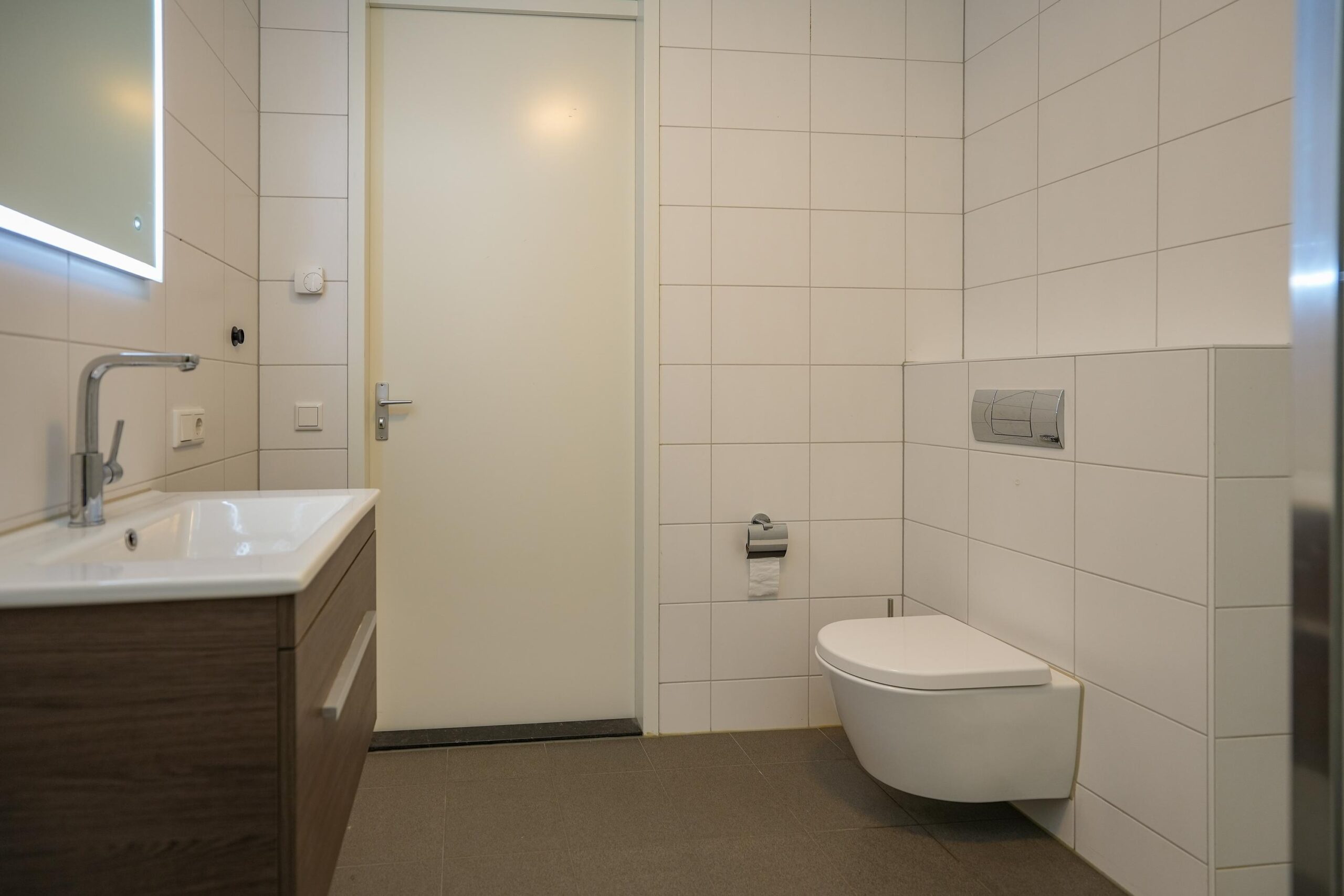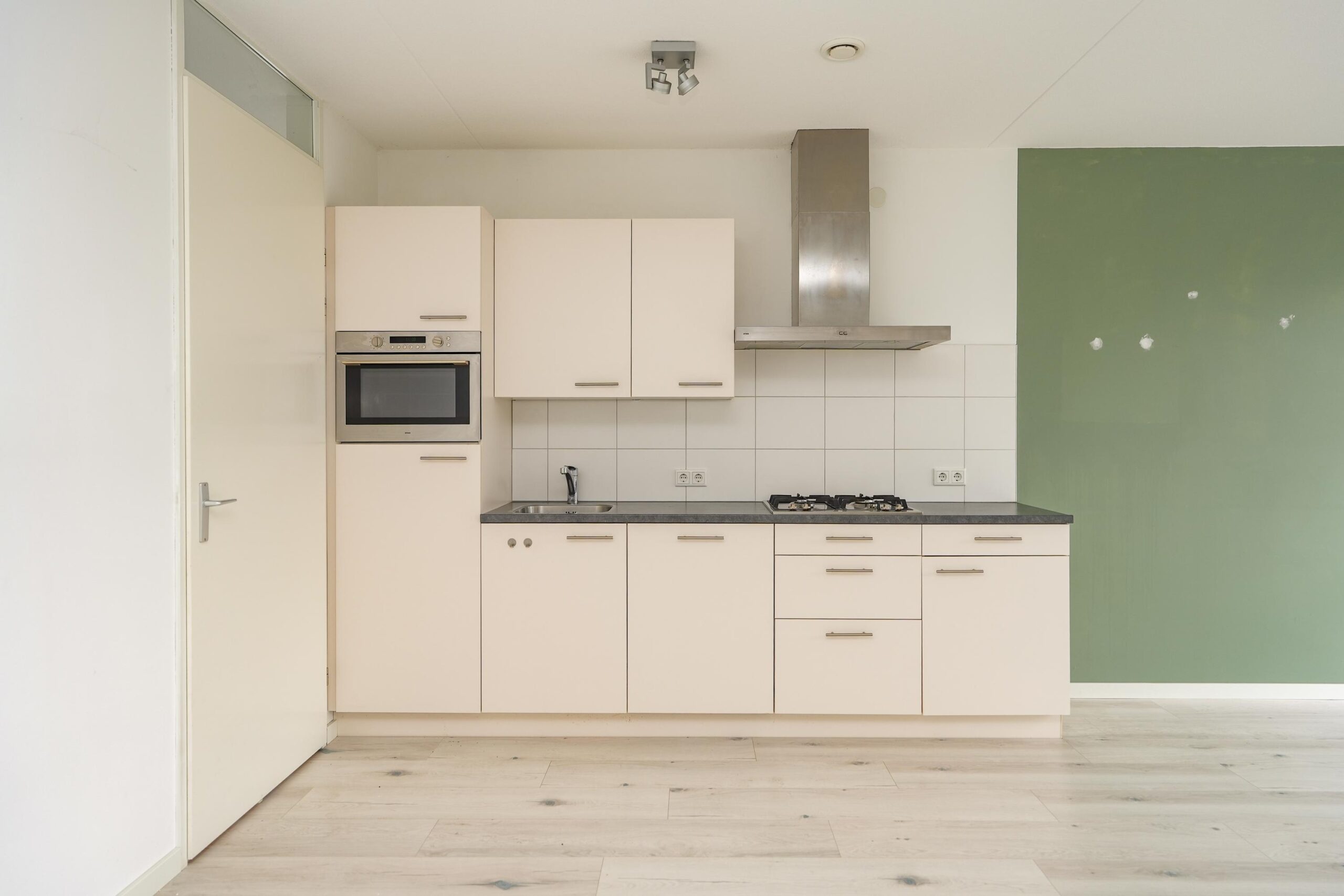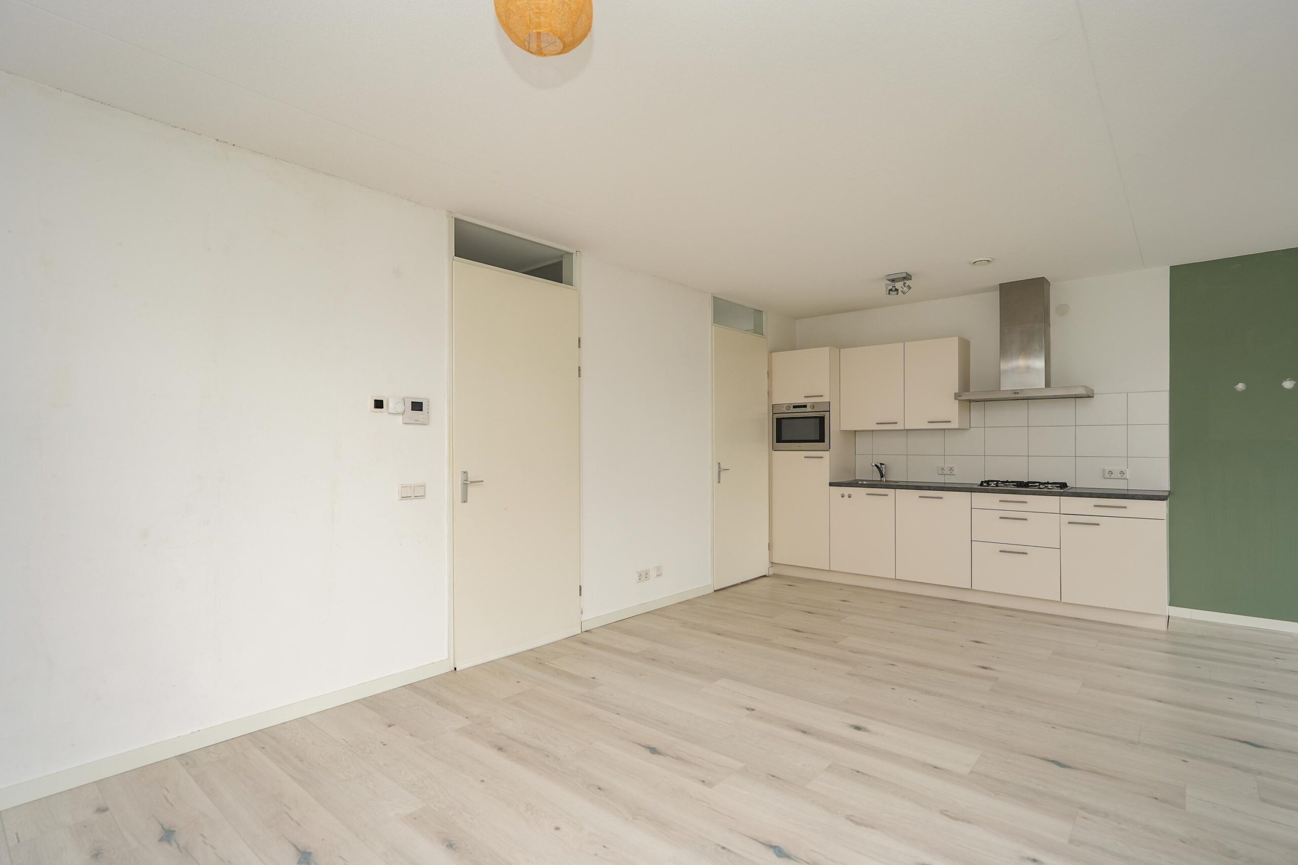 Entree, gang, apart toilet met fontein, 2 slaapkamers, luxe badkamer met douche, toilet en vaste wastafelmeubel, royale L-vormige woonkamer met schuifpui naar een royaal balkon, moderne open keuken met diverse inbouwapparatuur zoals vaatwasser, kookplaat, afzuigkap, oven en koelkast, technische ruimte met o.a. aansluiting wasmachine/droger en cv ketel.